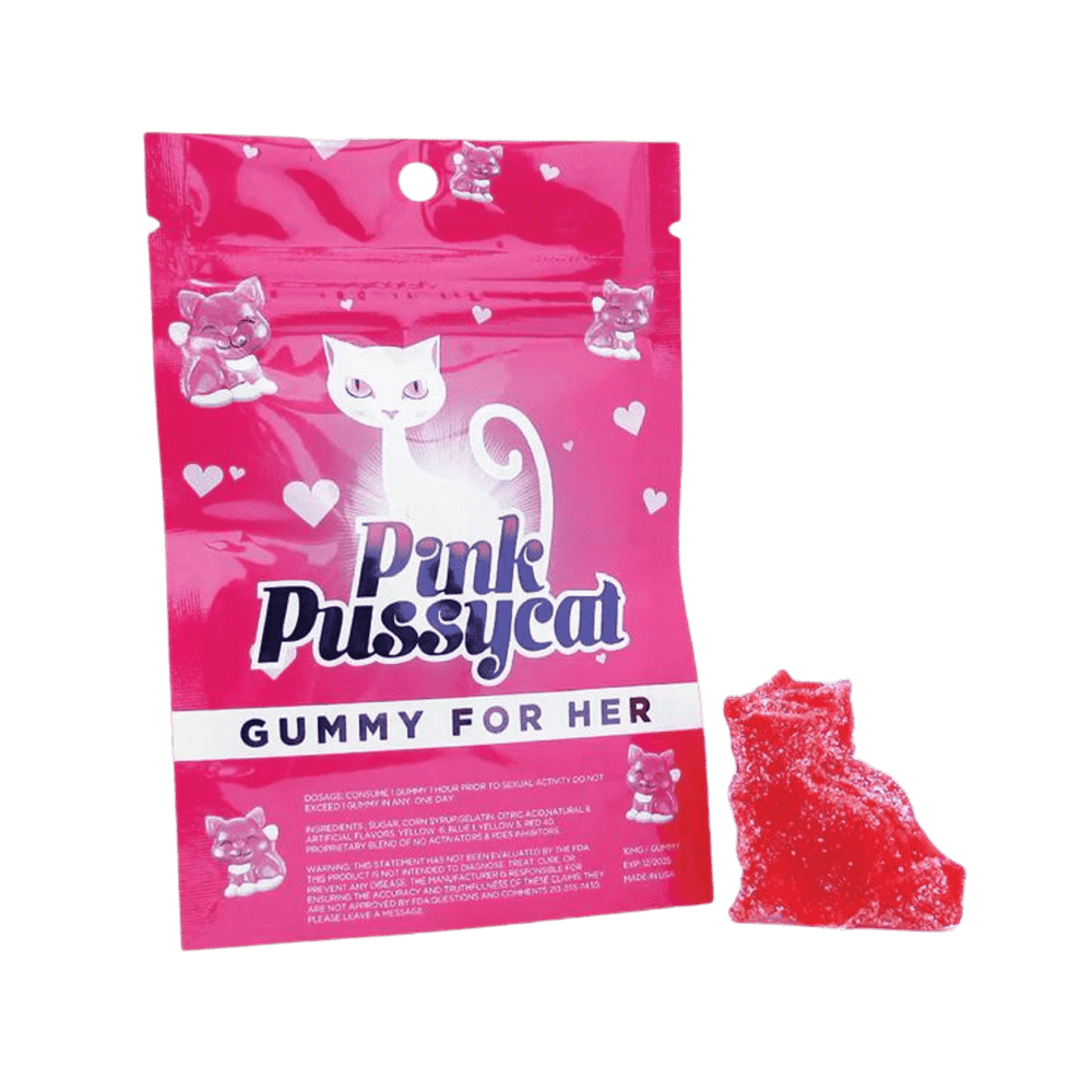 Take on Pink Pussycat gummy one hour before sexual activity to aid energy, libido, & sexual performance. Pink Pussycat can also be used on a regular basis to maintain a peak condition of preparedness prior to sexual activity. For best results, take Pink Pussycat one hour apart from taking any other supplements or medications. As with any oral supplement, you should always consult your doctor or physician before taking.
