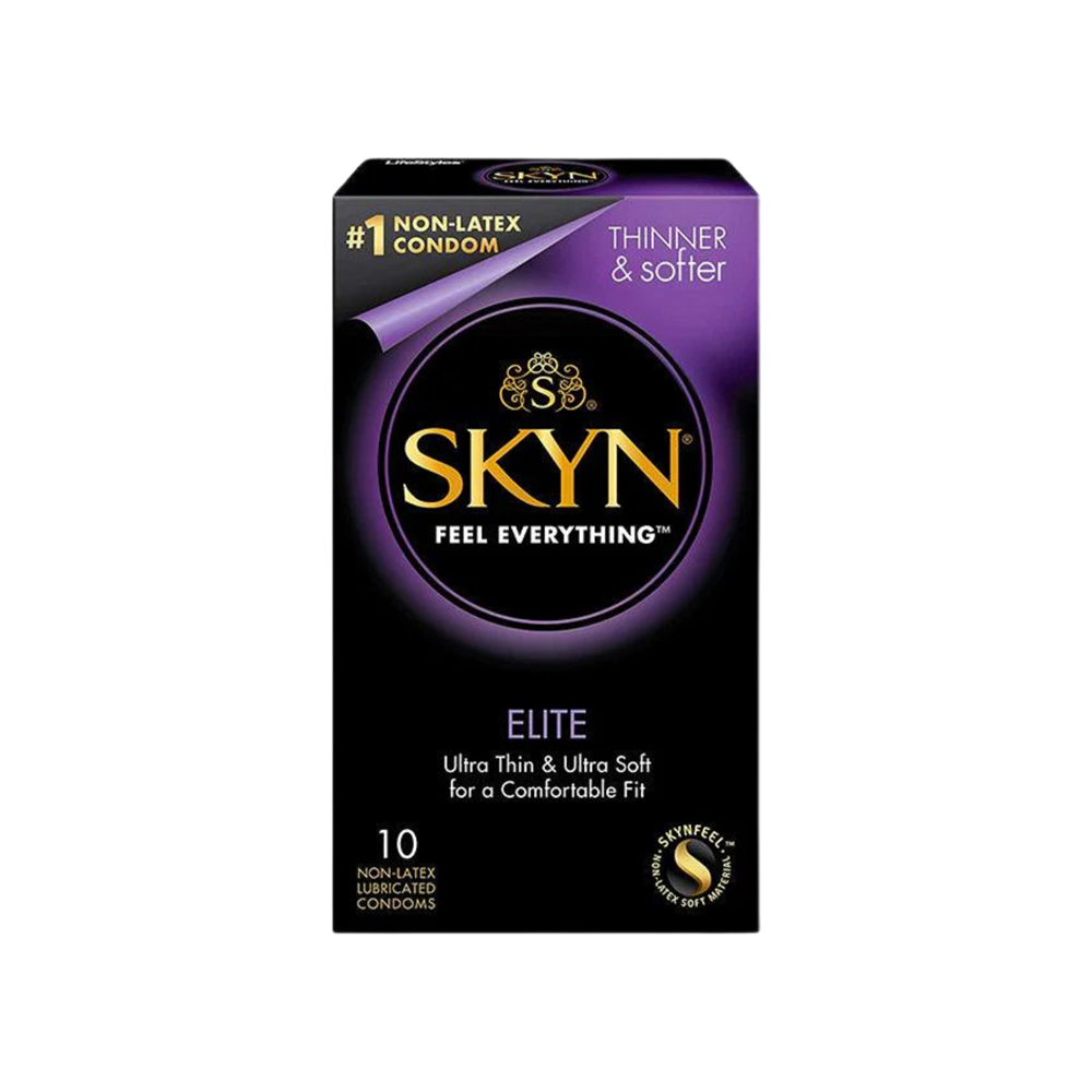 SKYN Elite condoms are ultra-thin for enhanced heat transfer and increased closeness. Their silky-smooth lubrication, flexible fit, and soft texture help both partners feel more connected during every moment. Strong, reliable, and crafted for superior comfort, SKYN Elite is one of the best non-latex condoms for elevated pleasure.